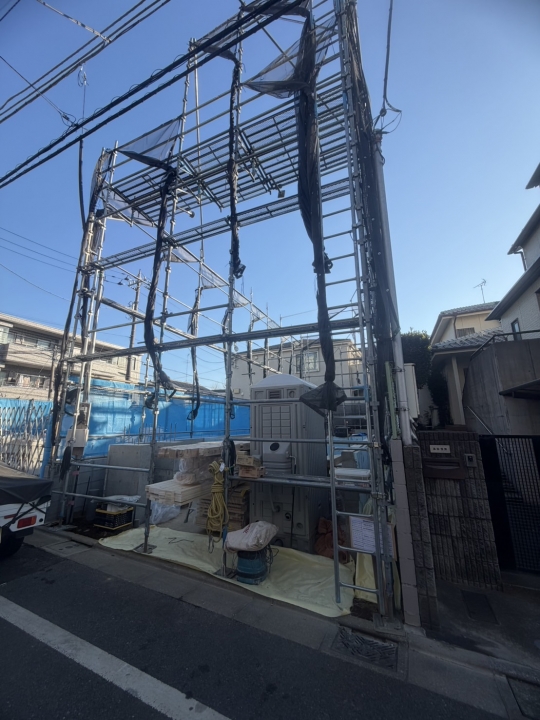 外部足場架け完了しました。